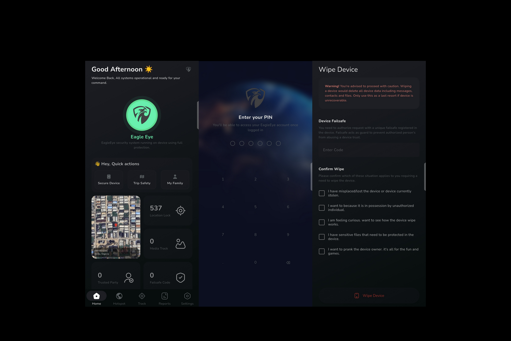 Having your device falls into the wrong hands can turn into a serious privacy threat. Eagle Eye gives you the ability to remotely wipe your private data, ensuring your information stays secure no matter where your device ends up.